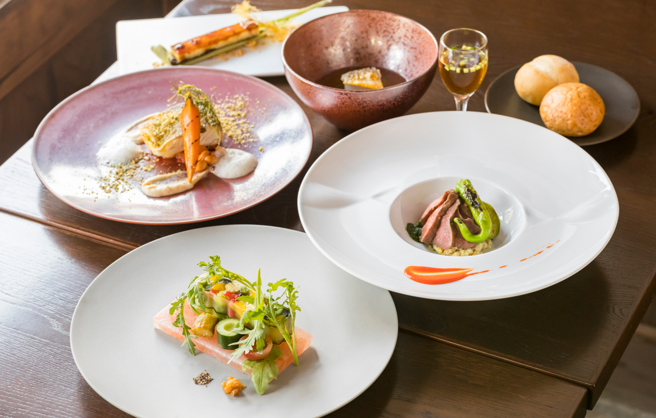 津山の豊かな大地と清流が育んだ旬の恵みを、熟練のシェフがフレンチの技で昇華させます。